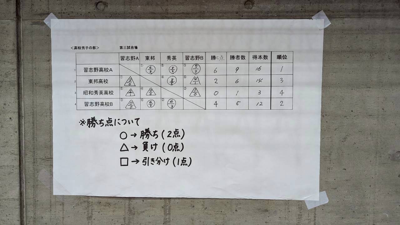 | ●高校男子の部 | 市立習志野高等学校A | 市立習志野高等学校B | 東邦大付属東邦高等学校 | - |