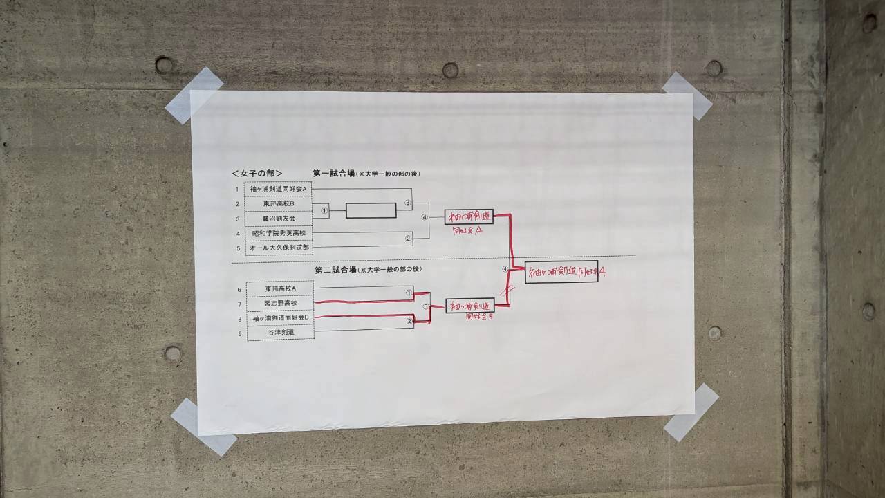 | ●女子の部 | 袖ヶ浦剣道同好会A | 袖ヶ浦剣道同好会B | 昭和学院秀英高等学校 | 市立習志野高等学校 |
